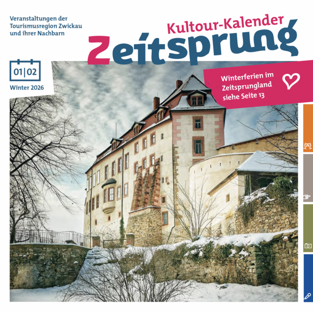Die Tourismusregion Zwickau bietet eine riesige Bandbreite verschiedenster Veranstaltungen an. Egal ob Konzerte, Lesungen, Feste & Märkte, Theateraufführungen oder Ausstellungen, in unserem Veranstaltungskalender finden Sie immer ein passendes Event. Stöbern Sie doch einfach einmal durch den Onlinekalender oder blättern Sie in unserem gedruckten "Zeitsprung-Kultourkalender", den wir alle zwei Monat für Sie auflegen. Unterhaltung und Spaß sind garantiert!