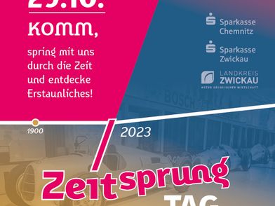 Am 29. Oktober 2023 rief der Tourismusregion Zwickau e.V. auf: „KOMM, spring mit uns durch die Zeit.“